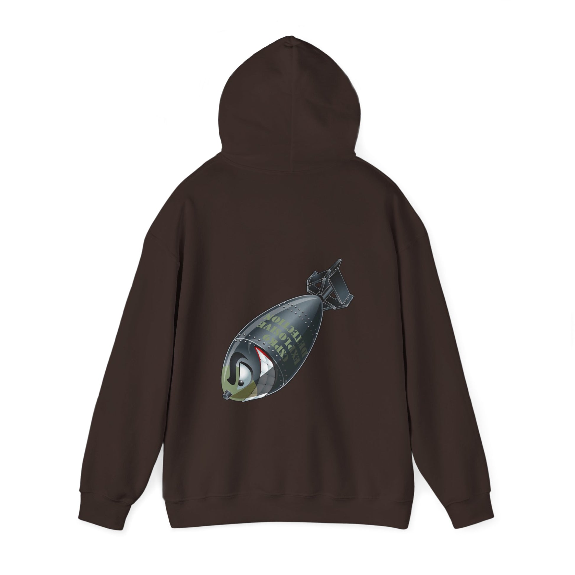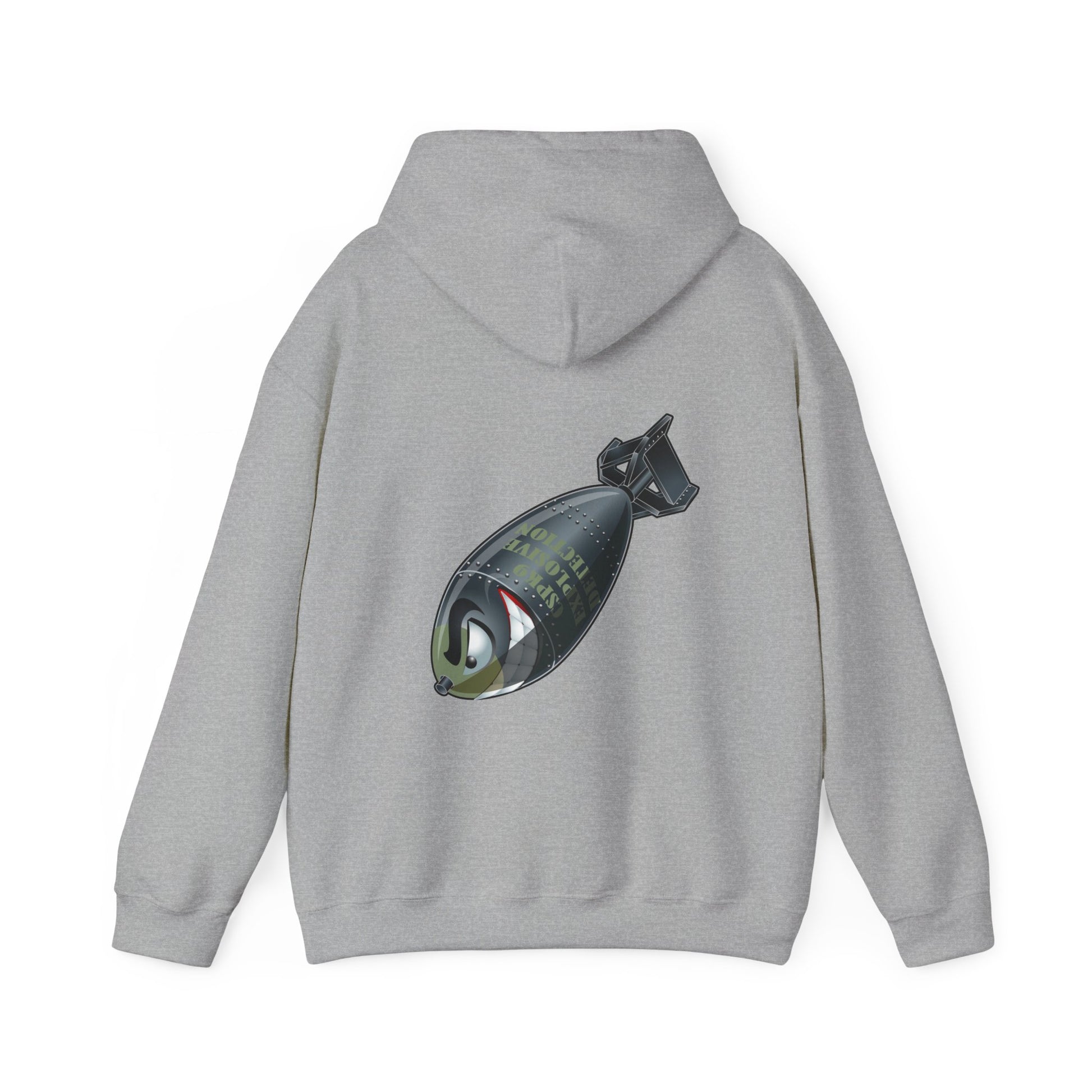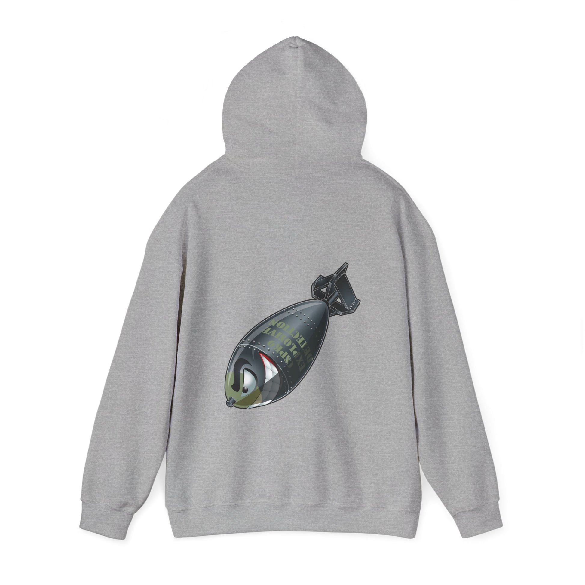 This cozy hooded sweatshirt carries a quiet, playful edge — a soft white canvas with a small, vintage-style emblem over the heart and a bold, illustrated fish-bomb graphic across the back. Wear it on damp mornings heading to the lake, layering over a tee for long drives or late-night bonfires. The roomy kangaroo pocket and double-lined hood keep hands warm and necks sheltered; the midweight fabric holds warmth without feeling bulky. It’s the kind of sweatshirt that reads like a private joke to other anglers and outdoor fans, while still looking clean and wearable around town.